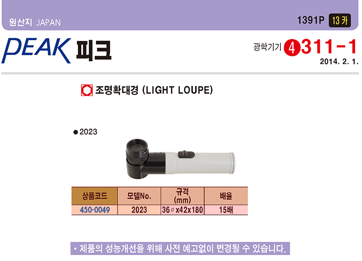 [PEAK/ÇÇÅ©]Á¶¸íÈ®´ë°æ(PEAK-2023,¨ª36x42x180mm,15¹èÁÜ)(LIGHT LOUPE)