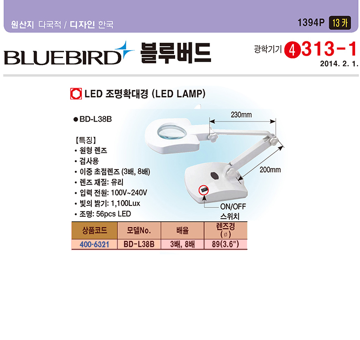 [BLUEBIRD/ºí·ç¹öµå]LED Á¶¸íÈ®´ë°æ(BD-L38B,3¹è/8¹èÈ®´ë,½ºÅĵåÇü)(LED Illumination Magnifier)(ÁÖ¹®Àü Àç°íÈ®ÀÎ)