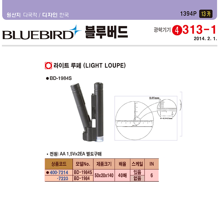 [BLUEBIRD/ºí·ç¹öµå] ¶óÀÌÆ® ·çÆä(BD-1984S,40¹èÈ®´ë,½ºÄÉÀÏ ÀÖ´Â Çü½Ä)(LIGHT LOUPE)=>Á¦Ç°´ÜÁ¾!