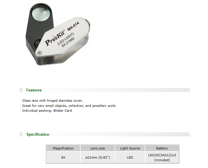 [PROSKIT]LED ÈÞ´ë¿ë È®´ë°æ (MA-014,¨ª21mmx8¹èÈ®´ë)(LED Illuminated Magnifier)=>Á¦Ç°´ÜÁ¾!