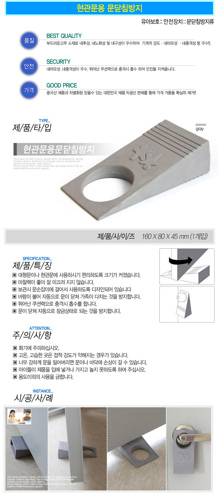 [LP] Çö°ü¹®¿ë ¹®´Ýħ¹æÁö(160x80x45mm,µµ¾î½ºÅäÆÛ/¹®´ÝÈû¹æÁö/¼Õ³¢ÀÓ¹æÁö)(Child safety door stopper)