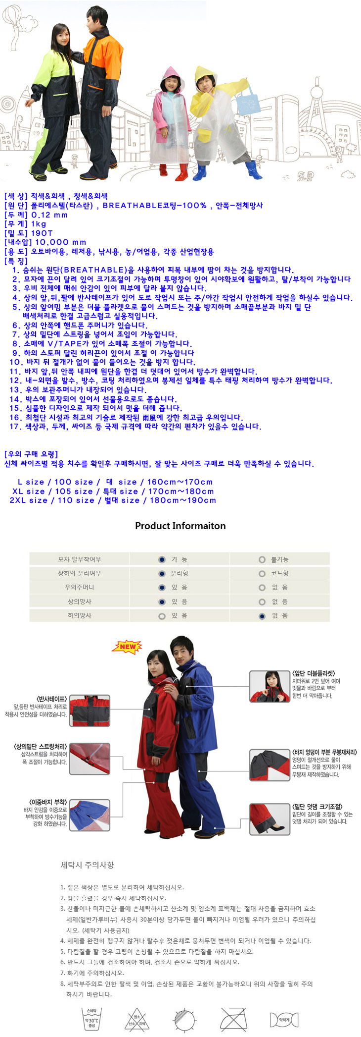 [TK] °í±Þ ÀÌÁß·¹Àú¿ë ¿ìÀÇ(TK-R6100-2,»ö»ó¼±Åð¡´É/Æú¸®¿¡½ºÅÚ)(Waterproof Rain Coat Safety Jacket)