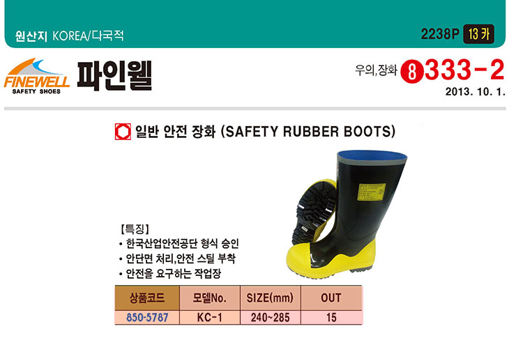[ÆÄÀÎÀ£/ºÎ±¹] ÀÏ¹Ý ¾ÈÀüÀåÈ­(KC-1,¾ÈÀü°ø´ÜÇü½ÄÀÎÁõ,¾ÈÀü½ºÆ¿ºÎÂø)(Safety Rubber Boots)