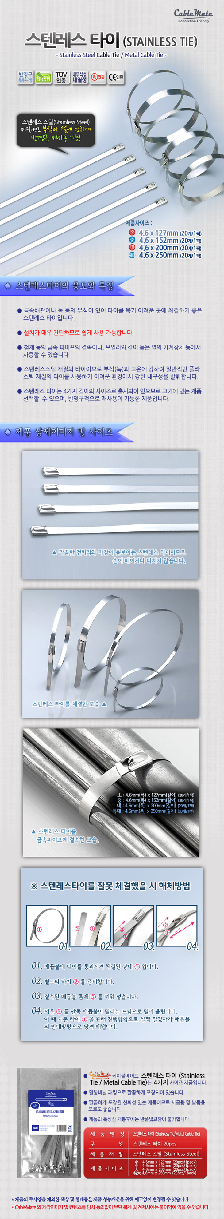 [CM] ½ºÅÙ·¹½º ÄÉÀ̺íŸÀÌ(Æø4.6x±æÀÌ250mm,Ư´ëÇü,20EA ¹­À½)