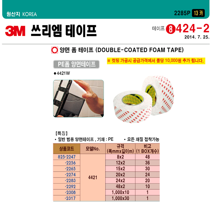 [HN] 3M ¾ç¸é PEÆû Å×ÀÌÇÁ/3M¹ü¿ë ¾ç¸éÅ×ÀÌÇÁ(4421W,Æø1¹ÌÅÍx±æÀÌ10¹ÌÅÍ)(¸ðµç ÀçÁú Á¢Âø°¡´É)(Double Coated Foam Tape)(ÁÖ¹®Àü Àç°íÈ®ÀÎ)
