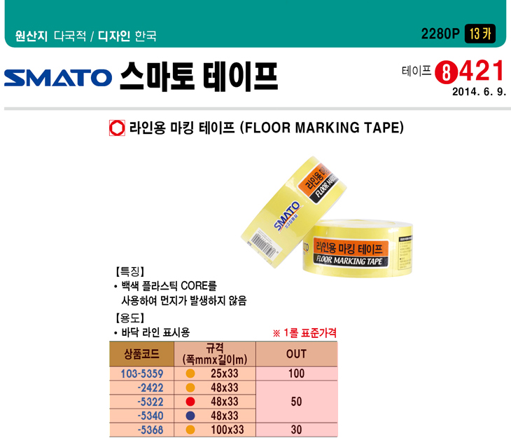 [½º¸¶Åä] ¶óÀÎ¿ë ¸¶Å·Å×ÀÌÇÁ(³ë¶õ»ö,Æø25mmx±æÀÌ33¹ÌÅÍ)(Floor Marking Tape)