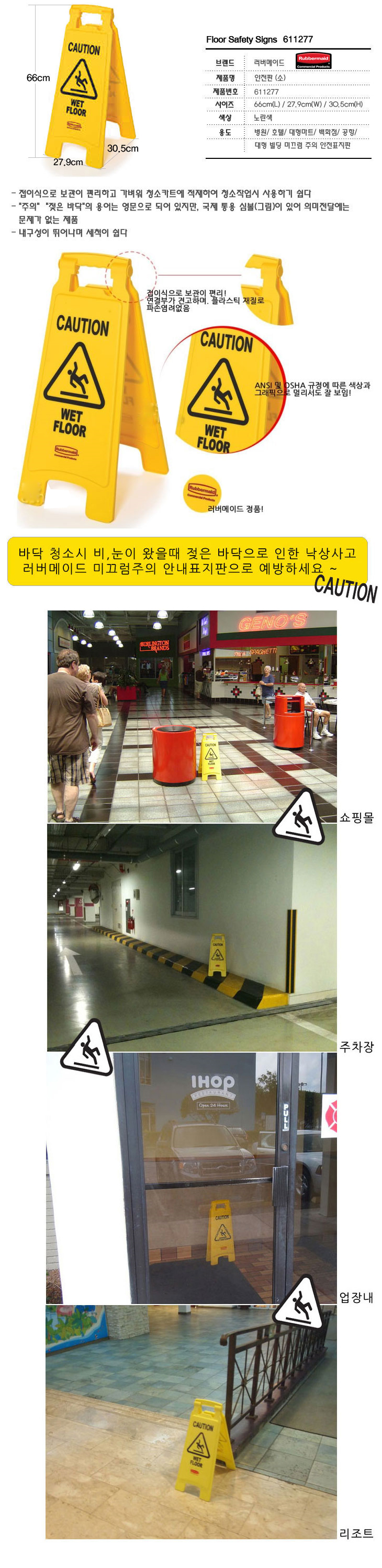[RM]CAUTION WET FLOOR Ç¥½Ã ¾ç¸é ¹Ù´Ú ¾ÈÀü Ç¥ÁöÆÇ(Rubbermaid 611277,660x279x305mm,¿µ¾îÀü¿ë/³ë¶õ»ö)(Floor Safety Signs)
