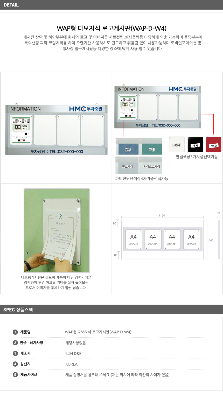 [ÀÏÁø] ¿¤¸®º£ÀÌÅÍ ¼³Ä¡ °Ô½ÃÆÇ/WAPÇü ´Ùº¸ ÀÚ¼® ·Î°í °Ô½ÃÆÇ(WAP-D-W4, A4 4¸Å 1150x540mm, °¡·ÎÇü, ·Îºñ ÀÎÆ÷¸ÞÀ̼Ç/Çà»çÀå ÀÔ±¸)