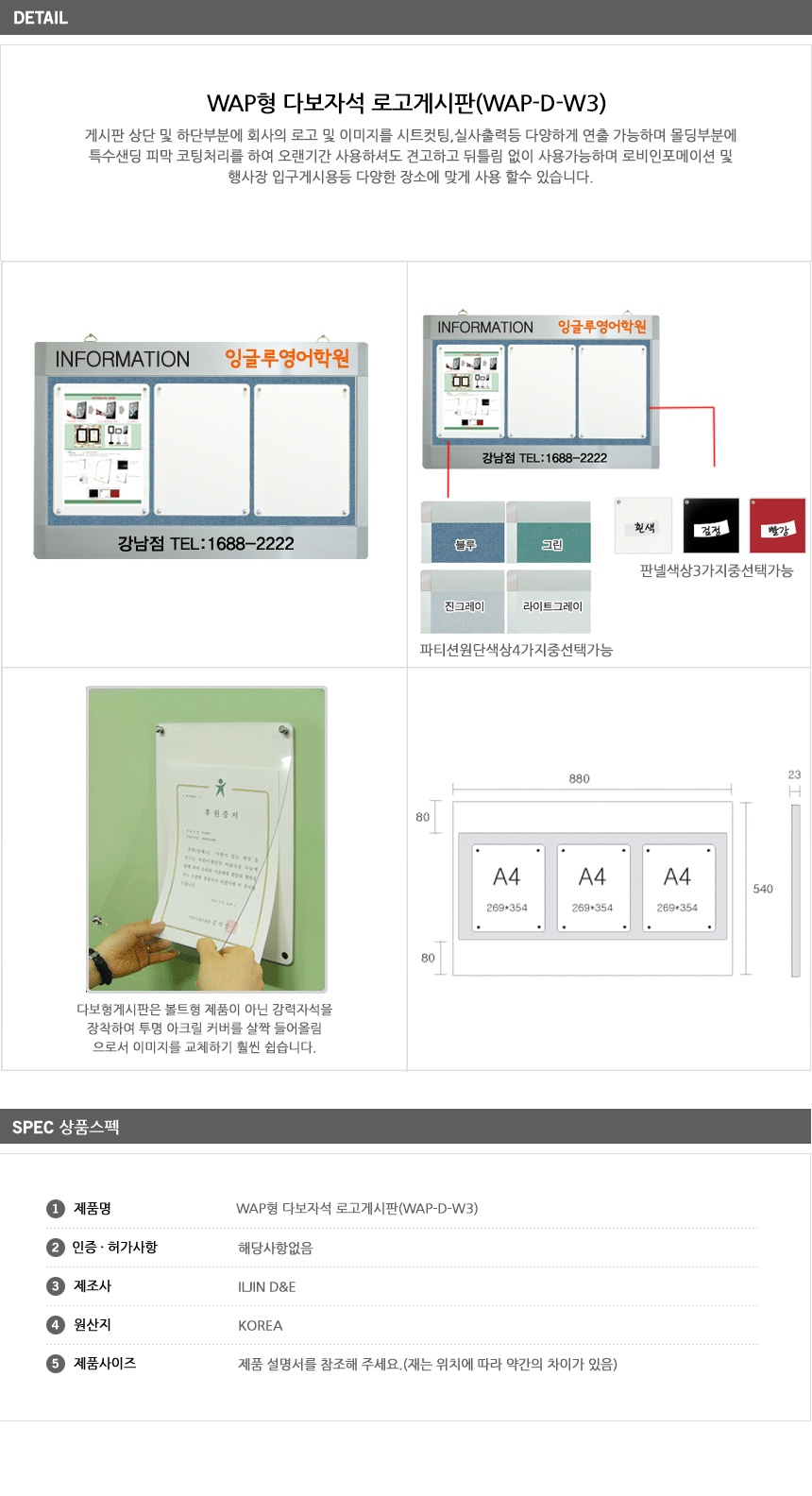 [ÀÏÁø] ¿¤¸®º£ÀÌÅÍ ¼³Ä¡ °Ô½ÃÆÇ/WAPÇü ´Ùº¸ ÀÚ¼® ·Î°í °Ô½ÃÆÇ(WAP-D-W3, A4 3¸Å 880x540mm, °¡·ÎÇü, ·Îºñ ÀÎÆ÷¸ÞÀ̼Ç/Çà»çÀå ÀÔ±¸)