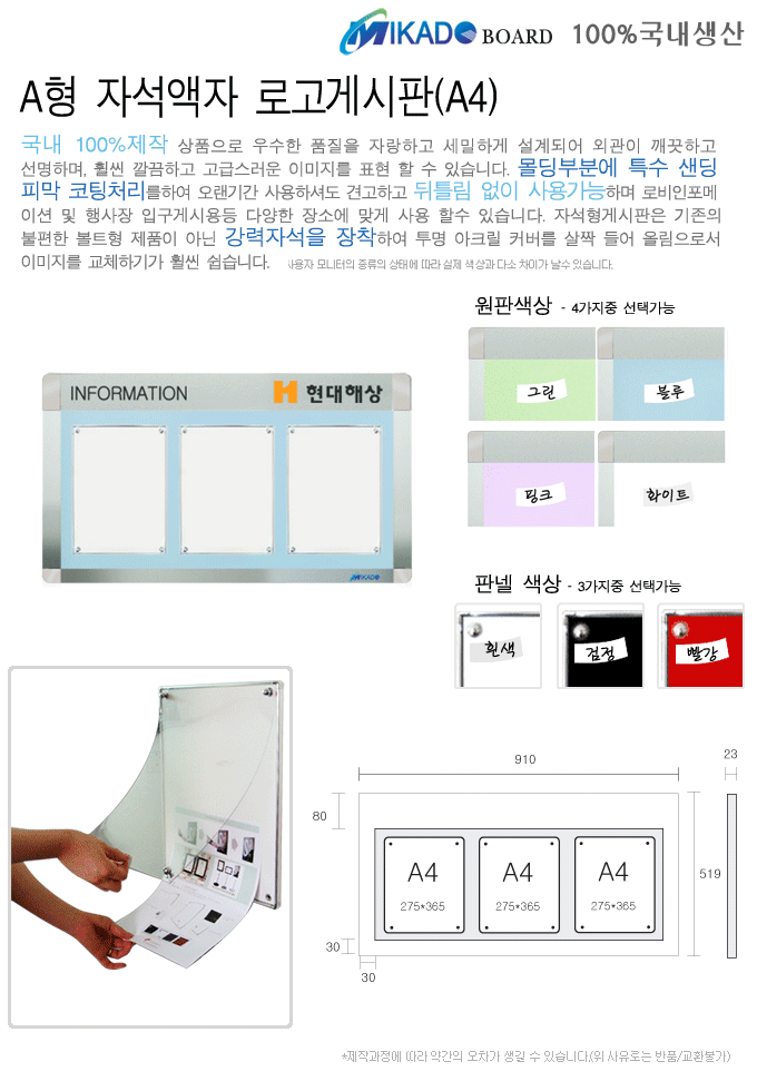 [ÀÏÁø] AÇü ÀÚ¼®¾×ÀÚ ·Î°í°Ô½ÃÆÇ(MK-AA,A4x3Àå °¡·ÎÇü,910x519mm)