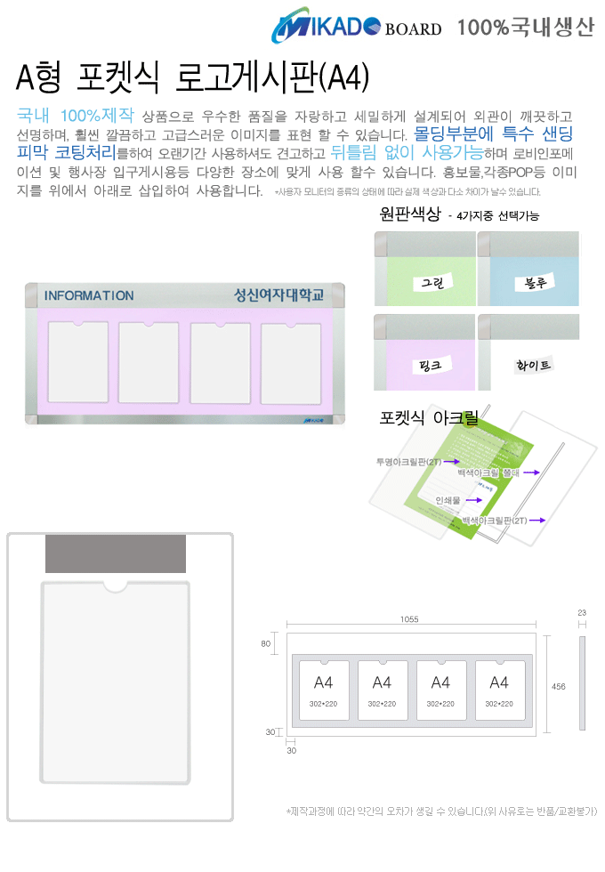 [ÀÏÁø] AÇü Æ÷ÄÏ½Ä ·Î°í°Ô½ÃÆÇ(MK-AC,A4x4Àå °¡·ÎÇü,1055x456mm)