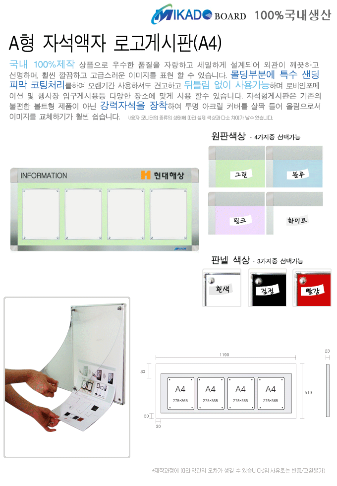 [ÀÏÁø] AÇü ÀÚ¼®¾×ÀÚ ·Î°í°Ô½ÃÆÇ(MK-AA,A4x4Àå °¡·ÎÇü,1190x519mm)