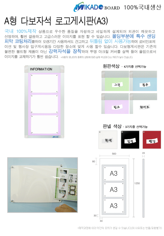 [ÀÏÁø] AÇü ´Ùº¸ÀÚ¼® ·Î°í°Ô½ÃÆÇ(A3x3Àå ¼¼·ÎÇü/202,560x1250mm)