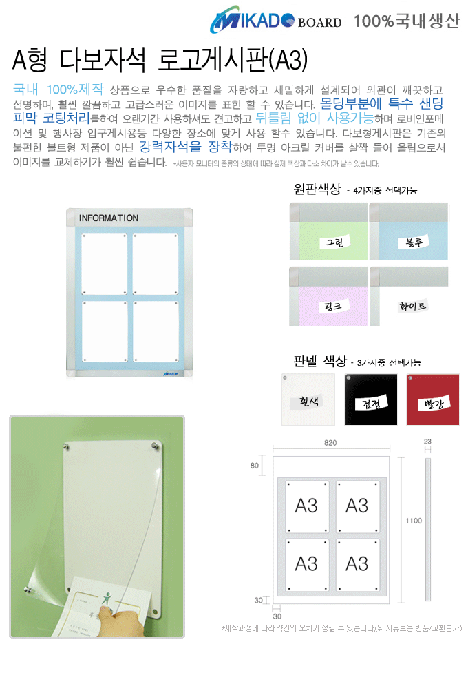 [ÀÏÁø] AÇü ´Ùº¸ÀÚ¼® ·Î°í°Ô½ÃÆÇ(A3x4Àå ¼¼·ÎÇü/104,820x1100mm)