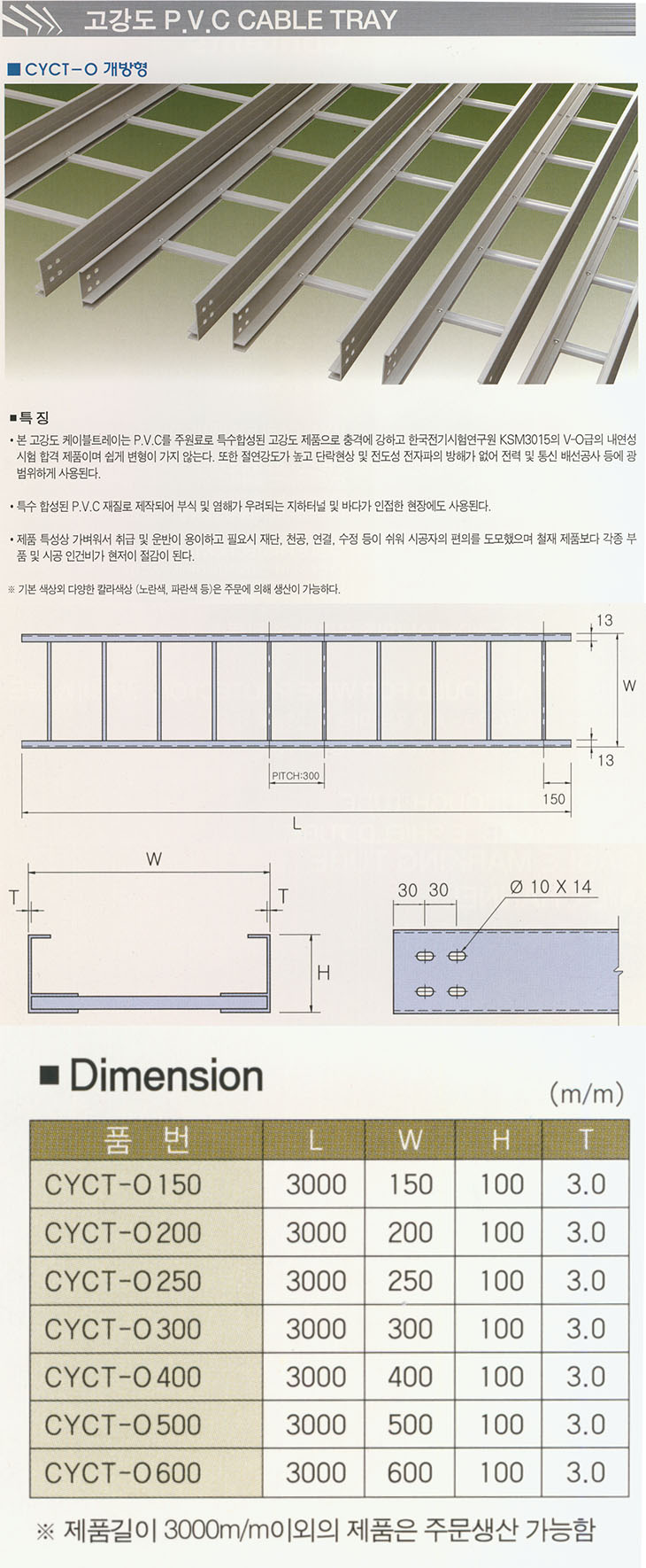 °í°µµ PVCÄÉÀÌºíÆ®·¹ÀÌ(CYCT-O °³¹æÇü) Á¦Ç°Àº 150mm/200mm/300mm ¼¼ °¡Áö ±Ô°Ý¸¸ °ø±ÞÀÌ °¡´ÉÇÏ°í ±âŸ »çÀÌÁî´Â ¸ðµÎ Á¦Ç°´ÜÁ¾À̵Ǿî¼~ °ø±ÞÀÌ ºÒ°¡´ÉÇÕ´Ï´Ù. |