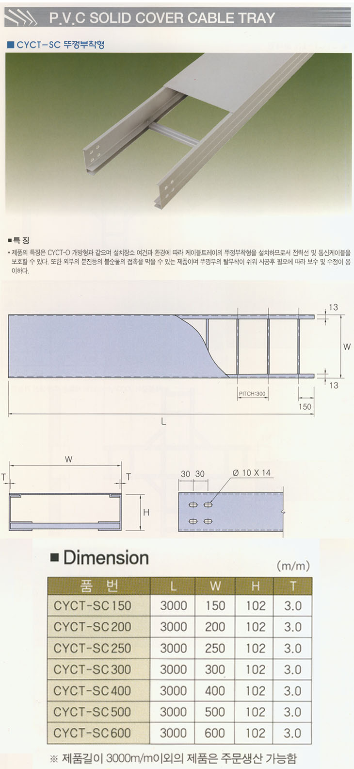 [CY] °í°­µµ PVCÄÉÀÌºíÆ®·¹ÀÌ(CYCT-SC ¶Ñ²±ºÎÂøÇü,»çÀÌÁî ¼±Åð¡´É,3¹ÌÅÍ)(PVC Cable Tray Body)