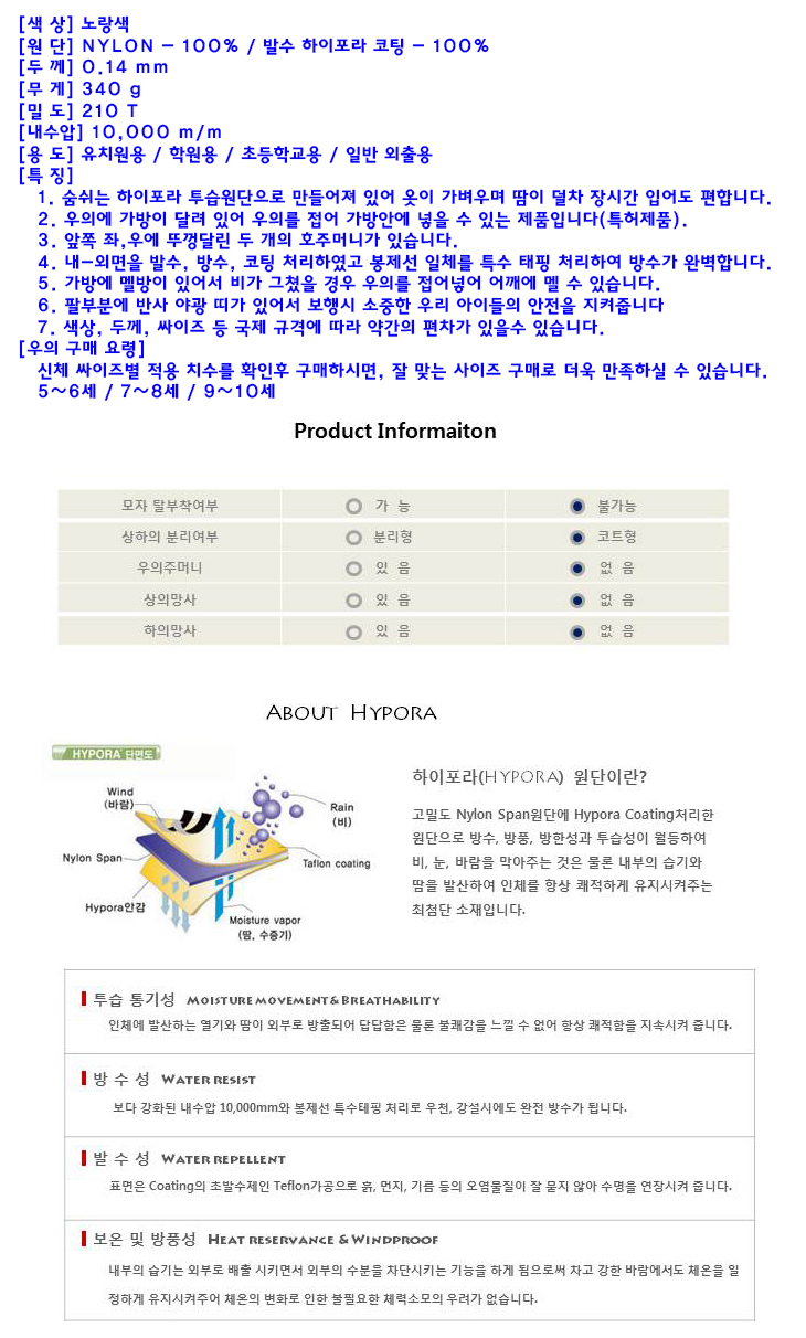 [TK] ¾Æµ¿ ÇÏÀÌÆ÷¶ó °¡¹æ¿ìÀÇ(TK-R7008,³ë¶õ»ö/ÇÏÀÌÆ÷¶ó+³ªÀÌ·Ð)(Waterproof Rain Coat Safety Jacket)