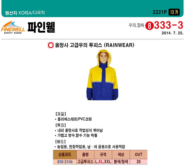 [ÆÄÀÎÀ£]¿Ã¸Á»ç °í±Þ¿ìÀÇ ÅõÇǽº(Ȳ»ö+û»ö/»çÀÌÁî ¼±Åð¡´É,Æú¸®¿¡½ºÅ׸£+PVCÄÚÆÃ)(Rainwear)
