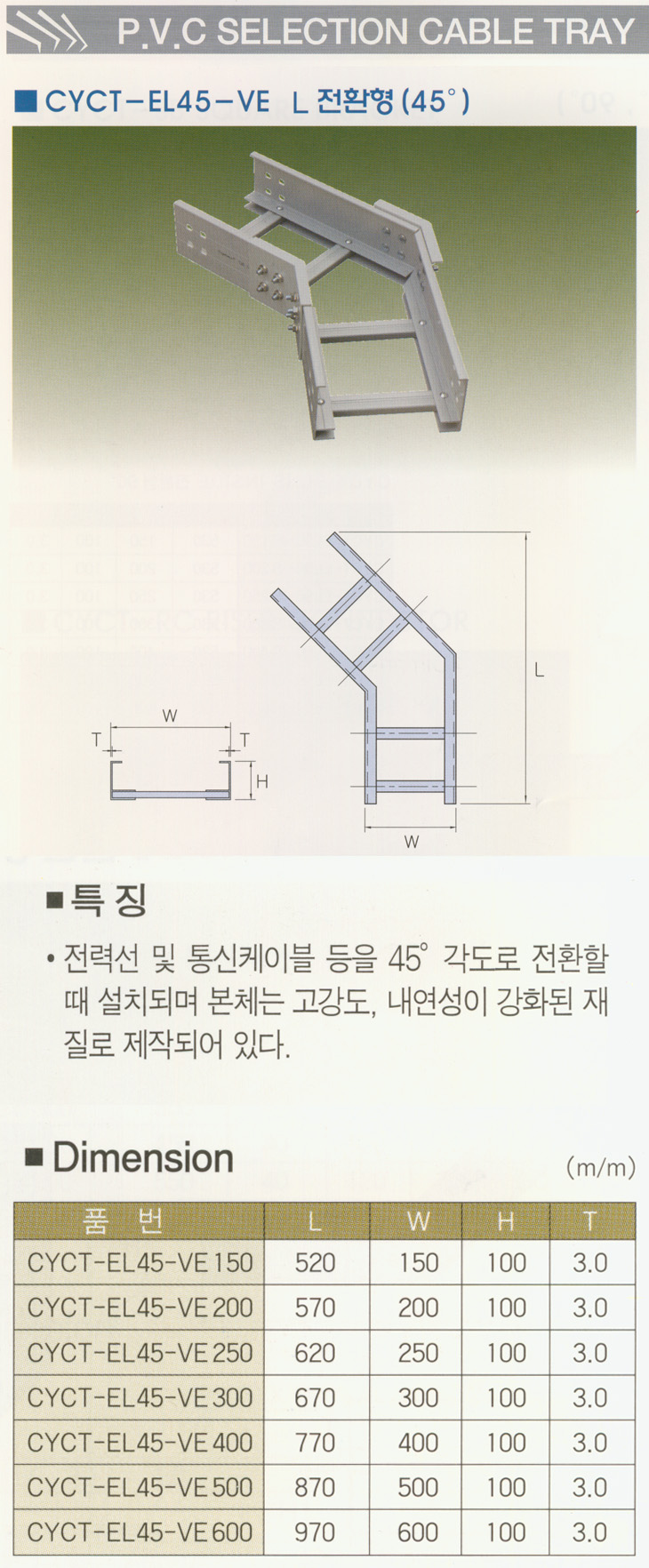 [CY] °í°­µµ PVCÄÉÀÌºí Æ®·¹ÀÌ LÀüȯÇü(CYCT-EL45-VE,¼öÆò45¡Æ¿¤º¸,»çÀÌÁî ¼±Åð¡´É)(PVC Cable Tray Elbow Accessory)