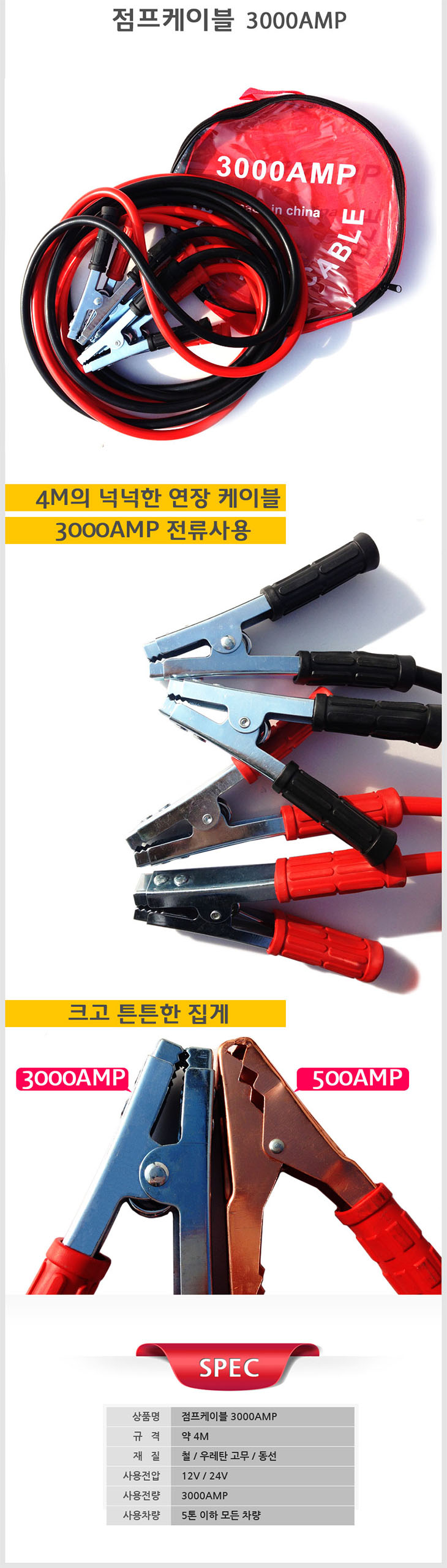 [WT]´ë¿ë·®/ÀüÂ÷Á¾ Á¡ÇÁÄÉÀ̺í(3000AMP,4.0¹ÌÅÍ,12V/24V°â¿ë,Á¡ÇÁ¼±)(Emergency Jump Cable)