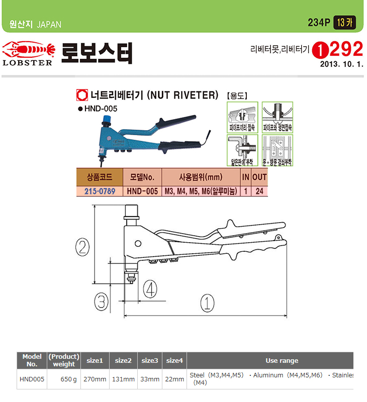 [LOBSTER] ³ÊÆ® ¸®º£Åͱâ(HND-005,M3/M4/M5/M6)(Nut Riveter)