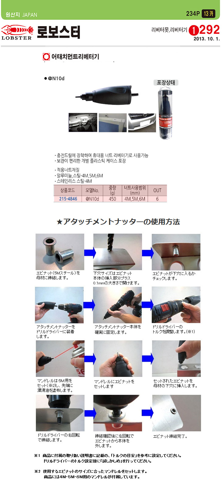 [LOBSTER] ¾îÅÂÄ¡¸ÕÆ® ³ÊÆ® ¸®º£Åͱâ(N10d,M4/M5/M6)(Attachment NUT Riverter)