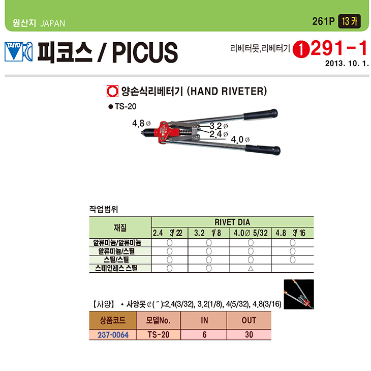 [PICUS] ¾ç¼Õ½Ä ¸®º£Åͱâ(TS-20,2.4/3.2/4.0/4.8mm)(Hand Riveter)