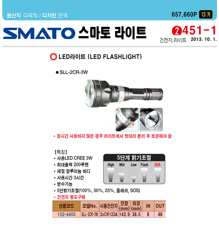 [½º¸¶Åä] LED ¶óÀÌÆ®(SLL-2CR-3W, ¹æ¼öÇü/CREE 3Watt, 142.9x38.5mm)(LED FLASHLIGHT)