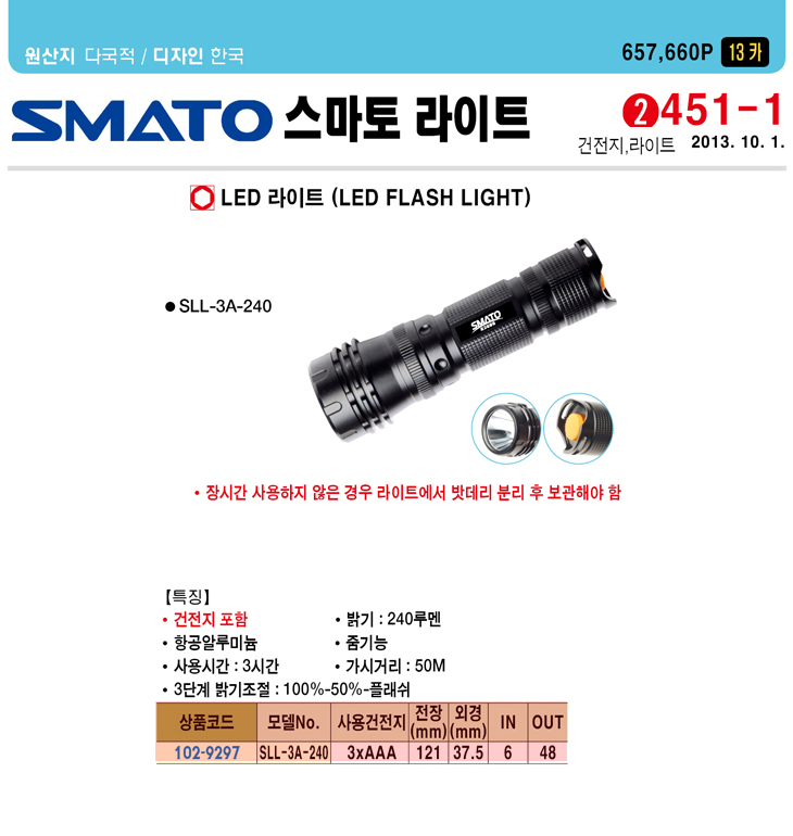 [½º¸¶Åä] LED ¶óÀÌÆ®(SLL-3A-240, Áܱâ´É/ÃÖ´ëÃâ·Â 240·ç¸à, 121x37.5mm)(LED FLASHLIGHT)
