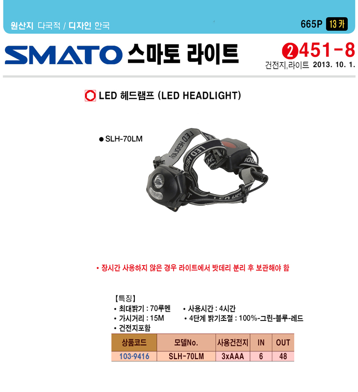 [½º¸¶Åä]LED Çìµå·¥ÇÁ(SLH-70LM,70·ç¸à/4´Ü°è¹à±âÁ¶Àý)(LED HEADLIGHT)=>Á¦Ç°´ÜÁ¾!