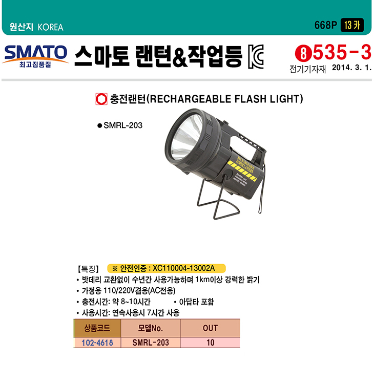 [½º¸¶Åä] ÃæÀü½Ä ·£ÅÏ(SMRL-203,110/220V°â¿ë/¾Æ´äŸÆ÷ÇÔ)(Rechargeable Flash Light)