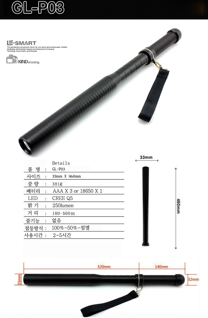 [PT] ¹æ¹ü¿ë/È£½Å¿ë LED·£ÅÏ/ÈÞ´ë¿ë LED·£ÅÏ/¼ÕÀüµî/ÈÄ·¹½¬(GL-P03,460x33mm, 381g, CREE Q5 °íÈÖµµLED)(°ïºÀÈÄ·¹½¬/¹æ¹æÀÌ ·£ÅÏ/ÈÄ·¹½¬/¼ÕÀüµî)