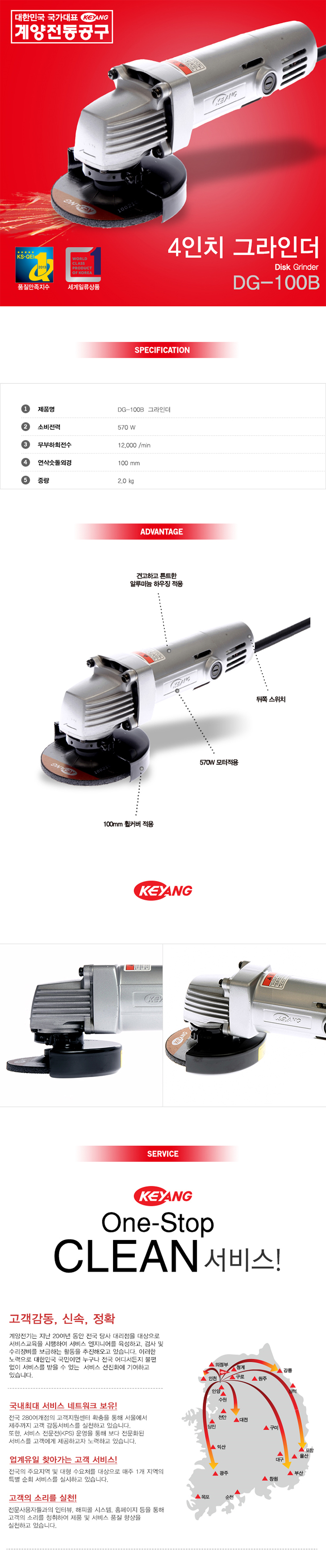[°è¾ç] 4ÀÎÄ¡ ±×¶óÀδõ(DG-100B, 570Watt, º¸±ÞÇü)(Disc Grinder)=>Á¦Ç°´ÜÁ¾!