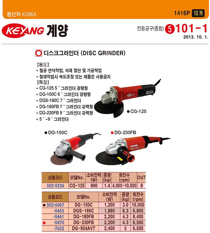 [°è¾ç] 9ÀÎÄ¡ ÀúÁøµ¿ ±×¶óÀδõ(DG-924AVT, 2400Watt)(Disc Grinder)