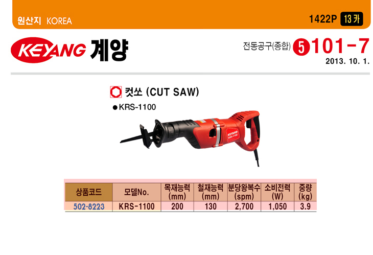 [°è¾ç] Àü±â ÄÆ½î(KRS-1100,1050Watt)(Electric Cut Saw)