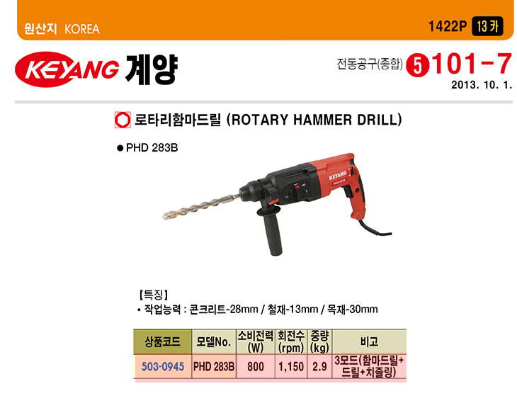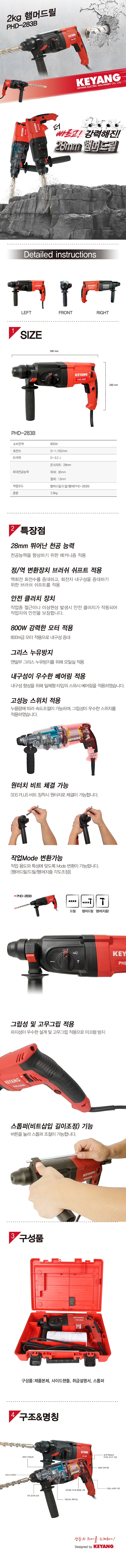 [°è¾ç] ·ÎŸ¸® °æ·® ÇÔ¸¶µå¸±(PHD-283B,3¸ðµå:ÇÔ¸¶µå¸±/µå¸±/Ä¡Áñ¸µ,500Watt)(Rotary Hammer Drill)