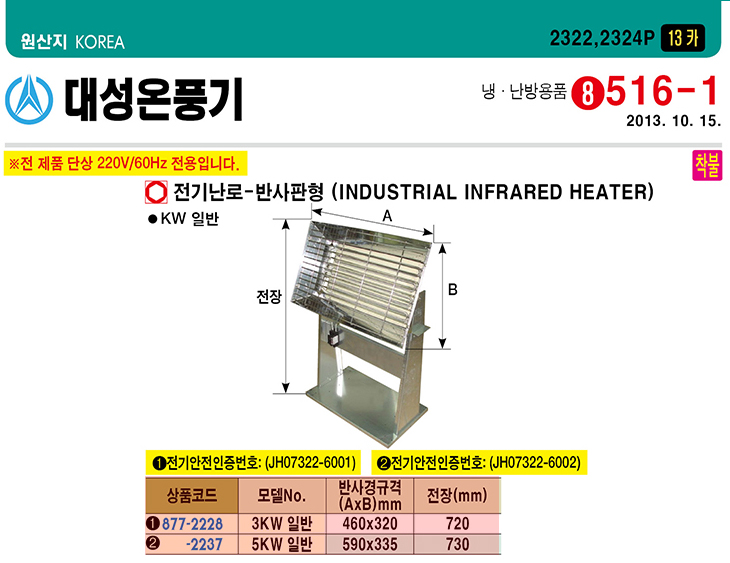 [´ë¼º¿Âdz±â] Àü±â³­·Î - ¹Ý»çÆÇÇü(5Kw, 590x335x730mm)(Industrial Infrared Heater)=>Á¦Ç°´ÜÁ¾=>´ëü»óǰ(878-5930)À¸·Î ÃâÇÏ ¿¹Á¤