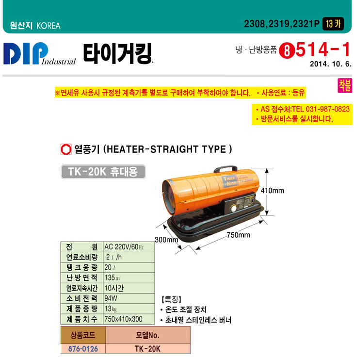 [DIP ŸÀ̰ÅÅ·] ¿­Ç³±â ÈÞ´ë¿ë(TK-20K, 750x410x300mm)(Heat Straight Type)