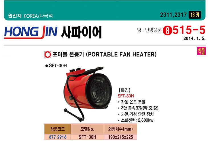 [È«Áø»çÆÄÀ̾î] Æ÷Æ®ºí ¿­Ç³±â(SFT-30H, 190x215x225mm, 2800Watt)(Portable Fan Heater)=>Á¦Ç°´ÜÁ¾!
