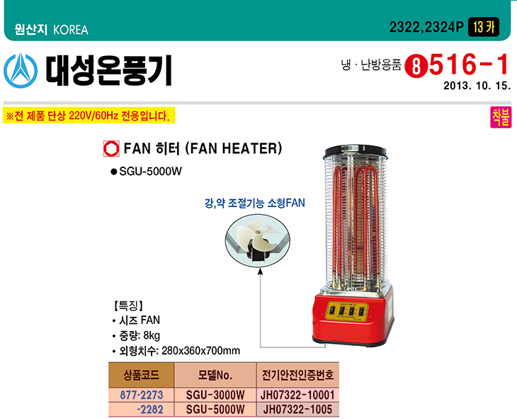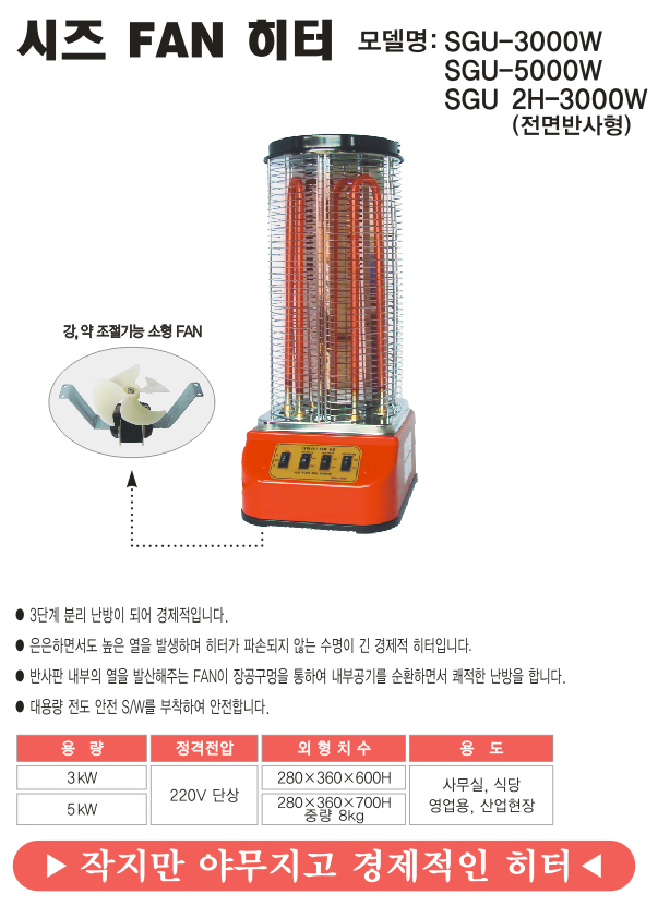 [´ë¼º¿Âdz±â] FAN È÷ÅÍ(SGU-5000W, 280x360x700mm, 5000Watt)(Fan Heater)