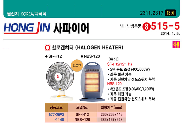 [È«Áø»çÆÄÀ̾î] ÇÒ·Î°Õ È÷ÅÍ(NSB-120, 383x167x628mm)(Halogen Heater)=>Á¦Ç°´ÜÁ¾=>´ëü»óǰ(NSB-1200:3´Ü Á¶Àý°¡´É,1200W)(¹«·á¹è¼Û)