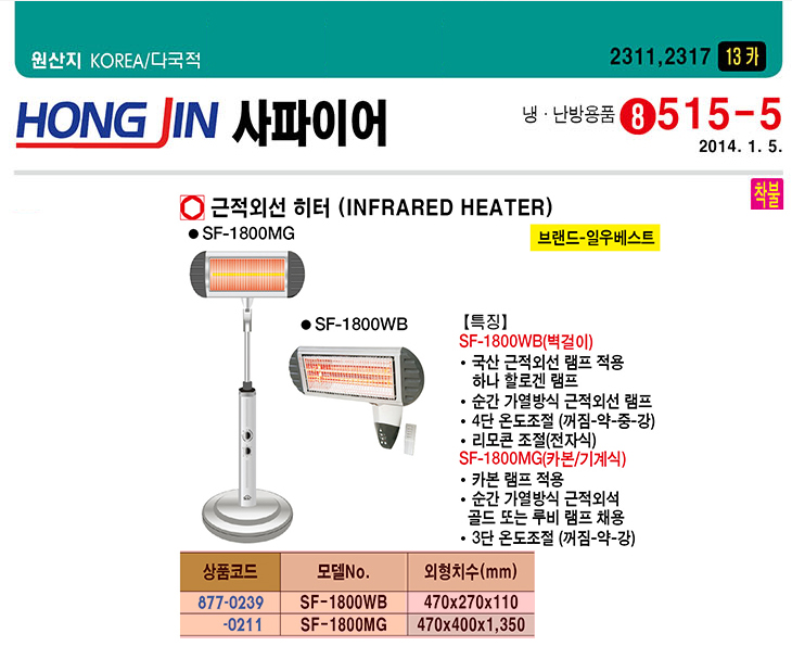[È«Áø»çÆÄÀ̾î] ±ÙÀû¿Ü¼± È÷ÅÍ(SF-1800SB, ½ºÅÙµåÇü, 560x210x1150mm)(Infrared Heater)