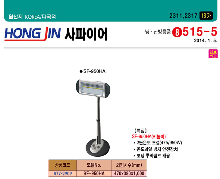 [È«Áø»çÆÄÀ̾î] ±ÙÀû¿Ü¼± È÷ÅÍ(SF-950HA, Ű³ôÀÌ, 470x380x1000mm)(Infrared Heater)