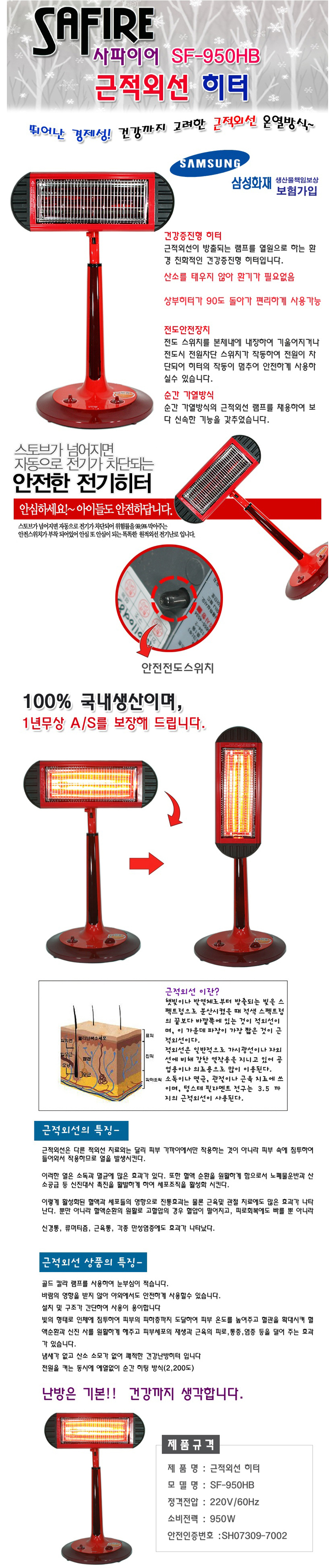 [È«Áø»çÆÄÀ̾î] ±ÙÀû¿Ü¼± È÷ÅÍ(SF-950HB, Ű³ôÀÌ, 470x380x1000mm)(Infrared Heater)