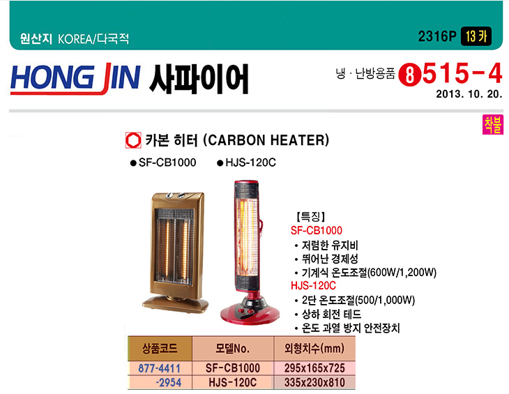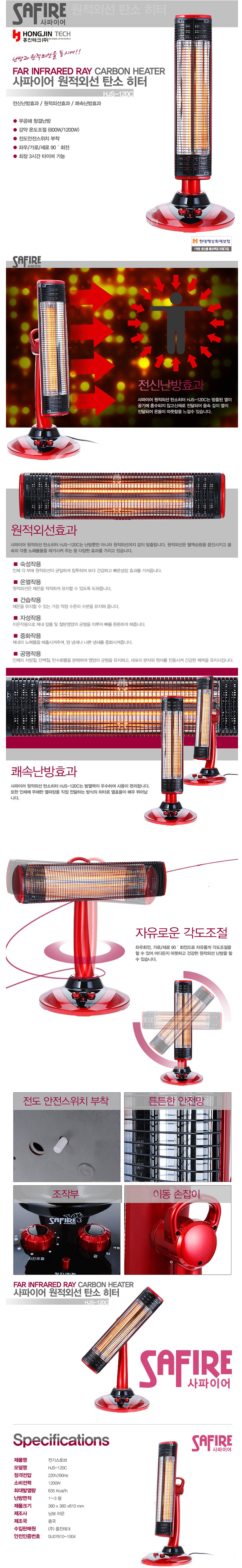 [È«Áø»çÆÄÀ̾î] Ä«º»È÷ÅÍ(HJS-120C, 335x230x810mm, 500~1000Watt)(Carbon Heater)