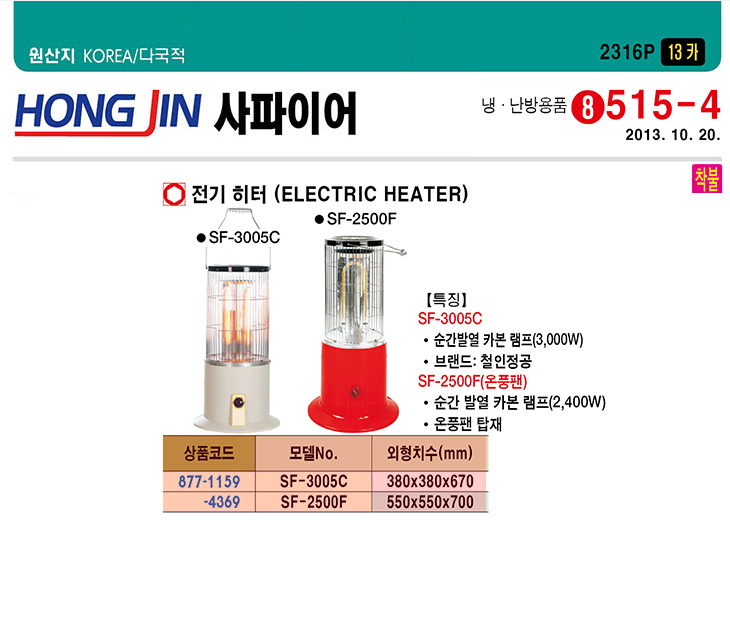 [È«Áø»çÆÄÀ̾î] ÄõÃ÷È÷ÅÍ(SF-2500F, 550x550x700mm, 2400Watt)(Electric Heater)