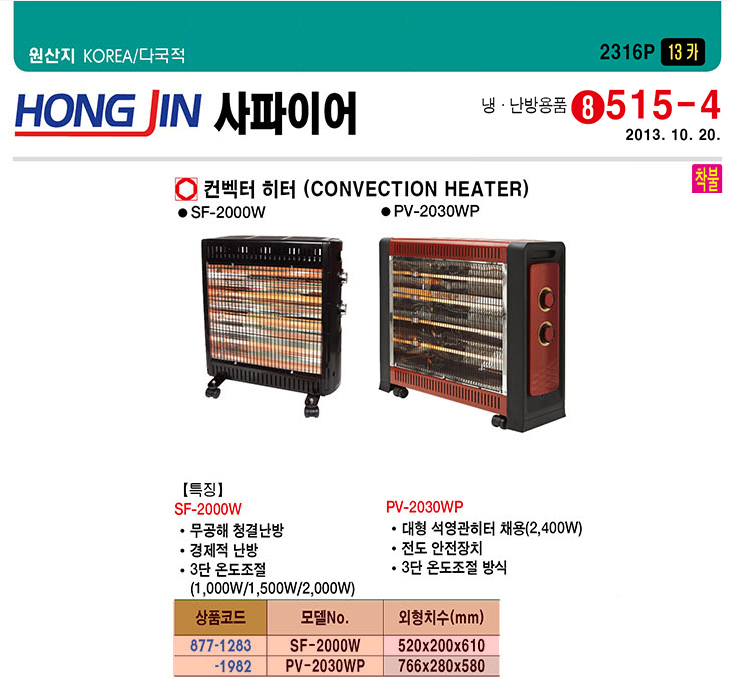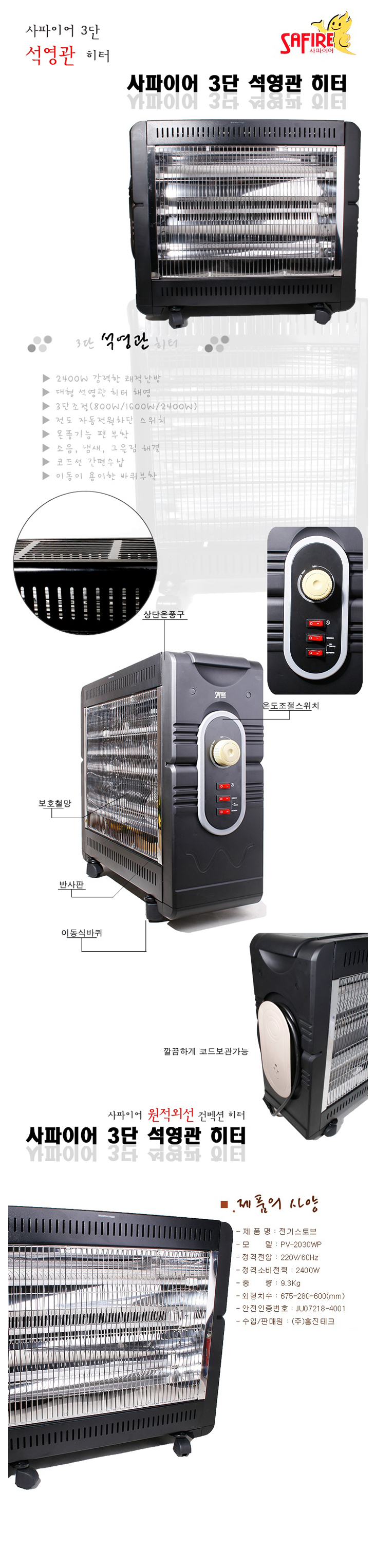 [È«Áø»çÆÄÀ̾î] ÄÁº¤¼Ç È÷ÅÍ(PV-2030WP, 766x280x580mm, 800~2400Watt)(Carbon Heater)