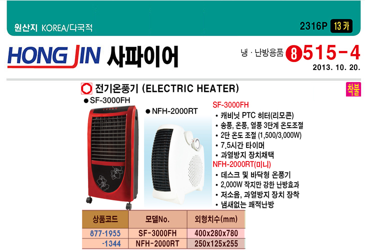 [È«Áø»çÆÄÀ̾î] Àü±â¿Âdz±â(SF-3000FH, 400x280x780mm)(Electric Heater)