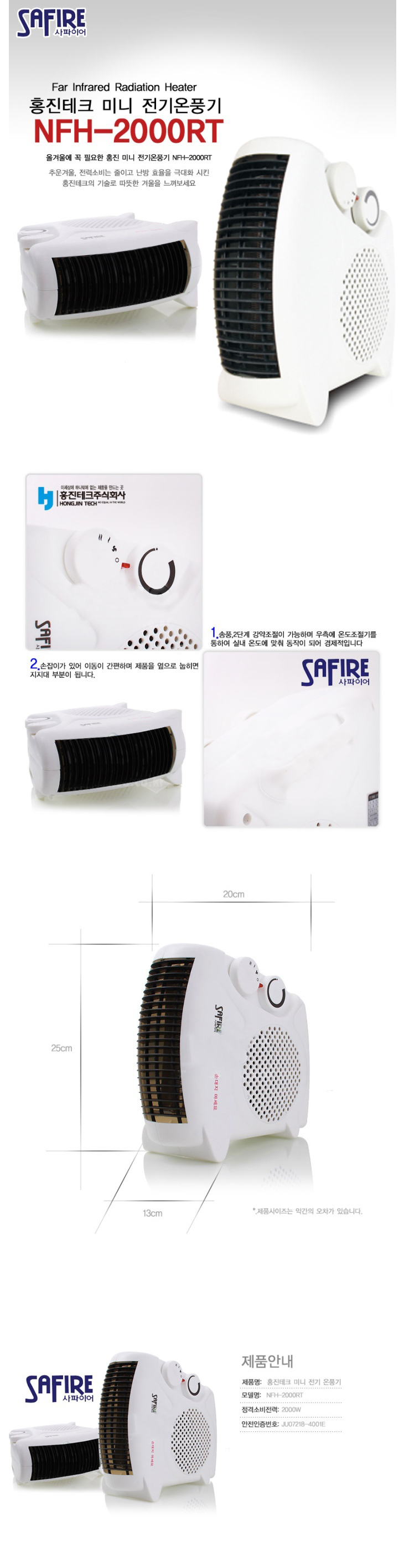 [È«Áø»çÆÄÀ̾î] Àü±â¿Âdz±â(NFH-2000RT, 250x125x255mm)(Electric Heater)