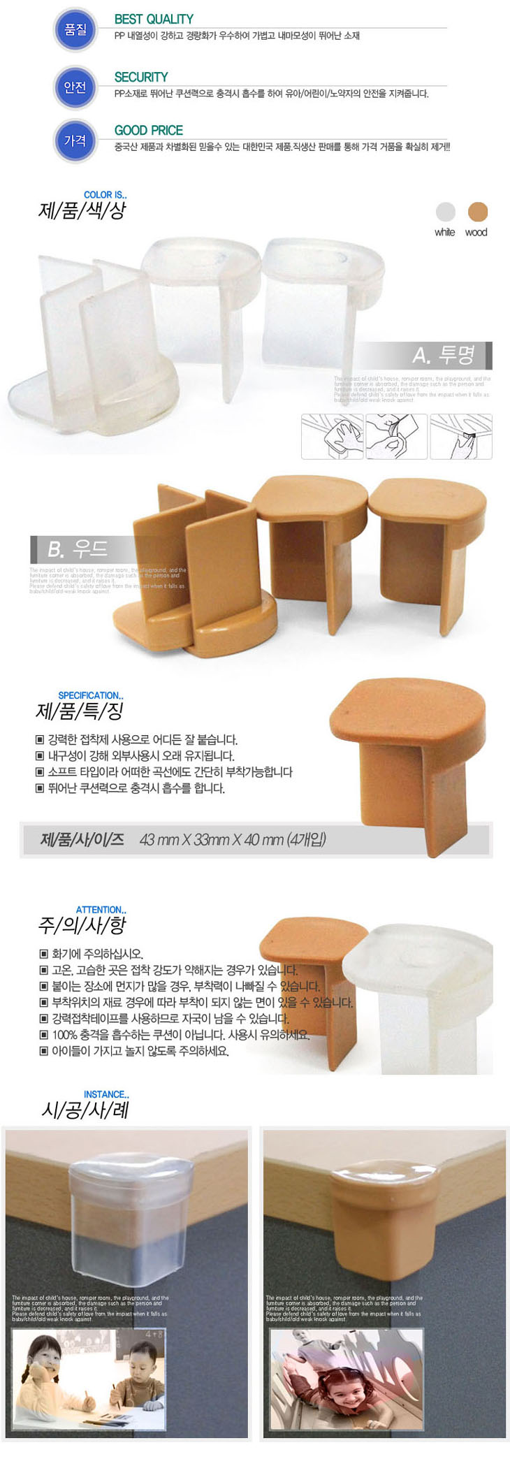 [LP]Äڳʺ¸È£´ë(PVC,43x33x40mm, ºÎµå·¯¿îÄÚ³Ê¸ÅÆ®/»ö»ó¼±ÅÃ/4°³¹­À½)(Safety cushion tape/Corner Guard/Edge protector)